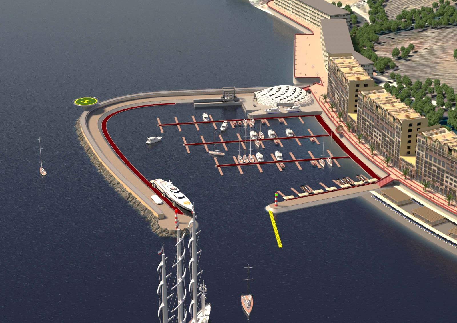 NAME PROJECT: "Gurzuf Lagun Marina" includes: marina, passenger sector shipments. MANAGEMENT & ENGINEERING: YRoyalYachts Naval Architect&Marine Engineering Center ARCHITECTURE & DESIGN : YRoyalYachts Naval Architect&Marine Engineering Center  Length overall 270 m Width 165 m Capacity 200 places