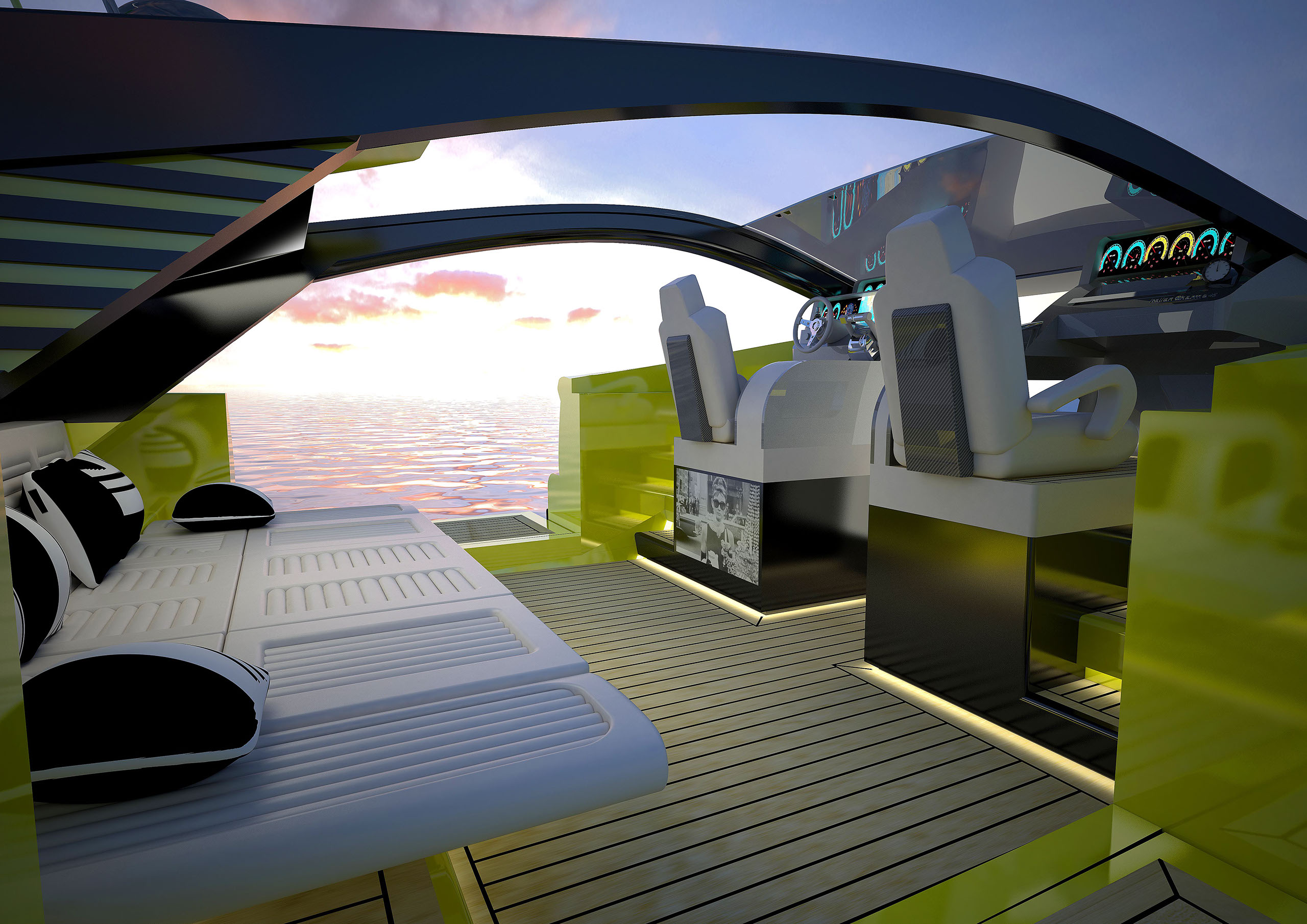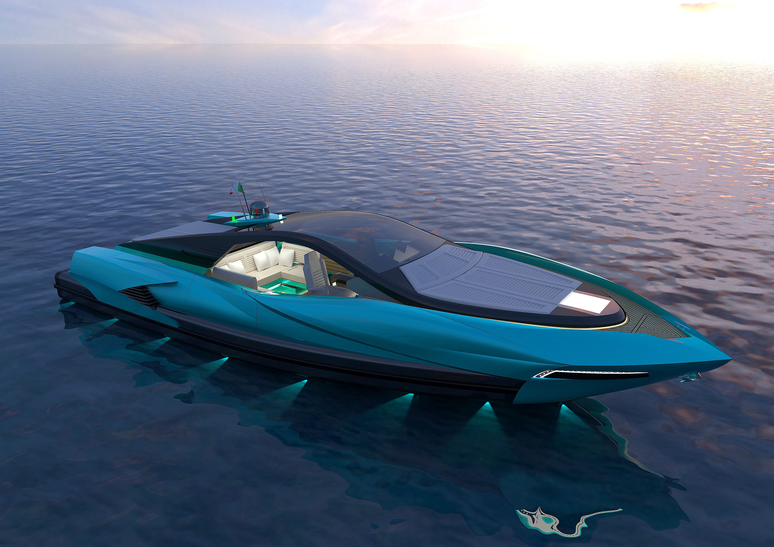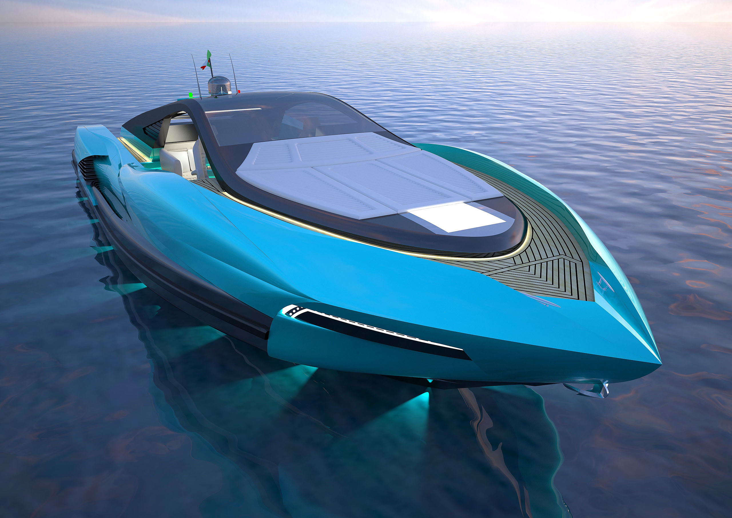 NAME PROJECT: Y 14 "CHARM ROYAL" SHIPYARD : YRoyalYachts CLASSIFICATION: CE MATERIAL: Composite MANAGEMENT & ENGINEERING: YRoyalYachts Naval Architect&Marine Engineering Center EXTERIOR / INTERIOR DESIGN : Pannone Architetti NAVAL ARCHITECTURE : Naval Engineering Cabes Yacht Length overall 14m / 45,93ft Beem overall 4,66m / 15,28ft Draft 0.7m / 2,29ft Full weight - 14000 kg / 30864 lb Fuel tank 760 liters / 200 US gal Water tanks 360 liters / 95 US gal Speed - 50 knots Engines - disel twin turbo 2x600 h.p.