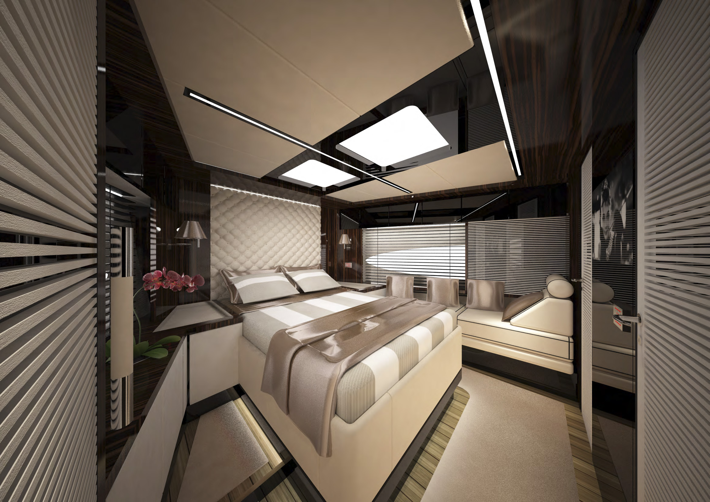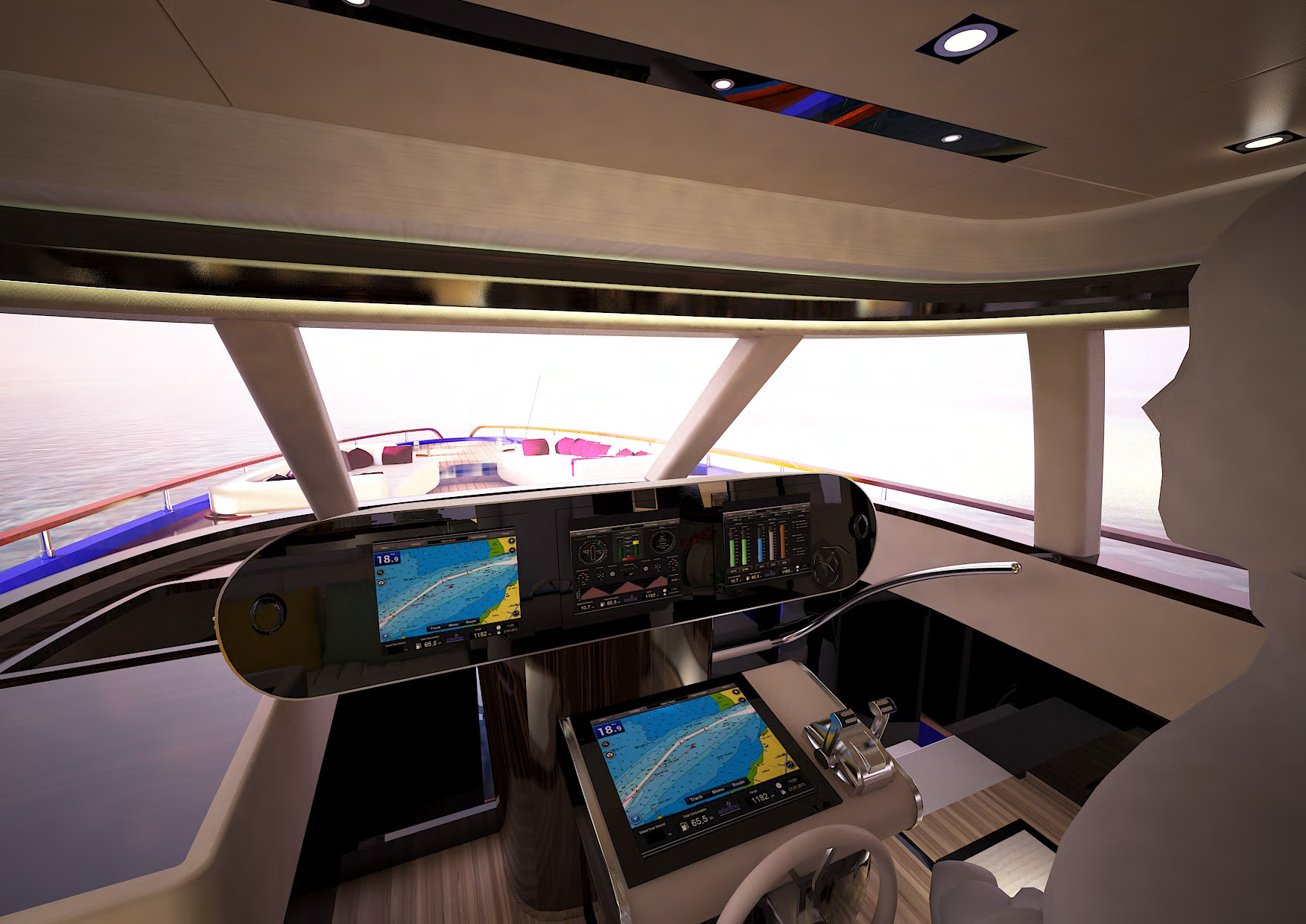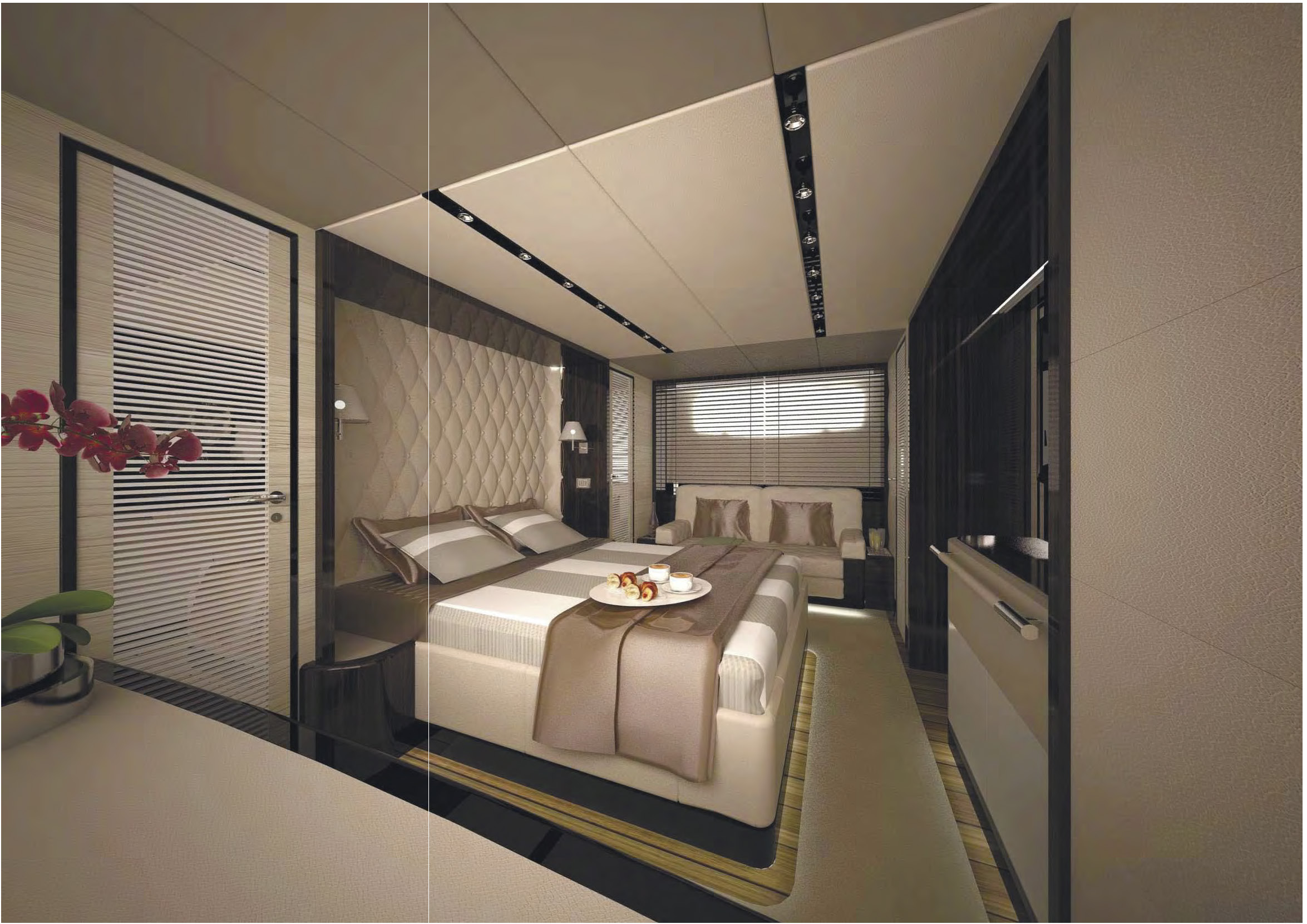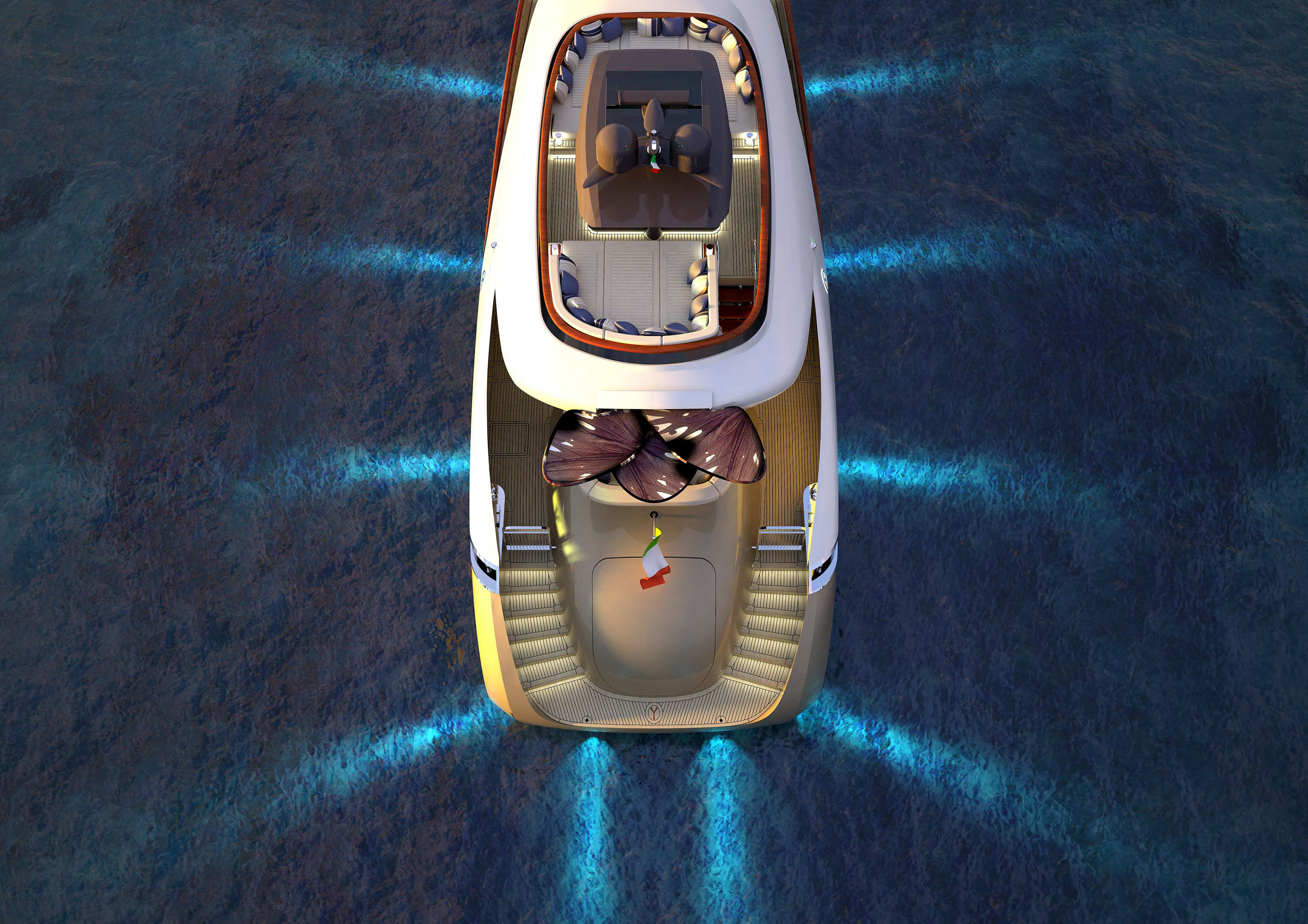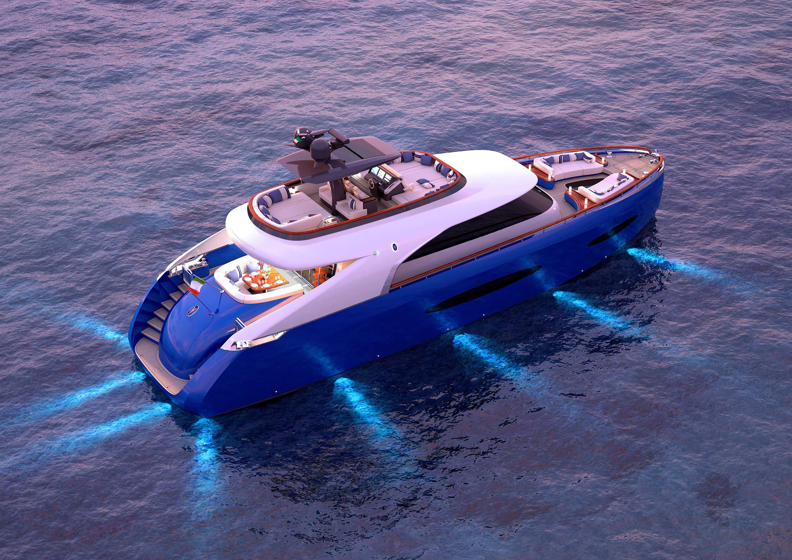 NAME PROJECT: Y 21 SHIPYARD : YRoyalYachts CLASSIFICATION: LLOYD + CE MATERIAL: Aluminium MANAGEMENT & ENGINEERING: YRoyalYachts Naval Architect&Marine Engineering Center EXTERIOR / INTERIOR DESIGN : Pannone Architetti NAVAL ARCHITECTURE : Naval Engineering Cabes Yacht Length overall 21m / 70ft Beem overall 6m / 19.7ft Draft 1.35m / 4.43ft Full weight - 60000 kg / 132277 lb Fuel tank 14 000 liters / 3 700 US gal Water tanks 2 200 liters / 581 US gal Cruising speed - 14 knots, max speed - 24 knots Cruising range - 3500 miles (10 knots) Engines - CAT C12.9 twin turbo 2x1000 h.p. 1 owner`s suite, 1 guest cabin, 1 crew cabin